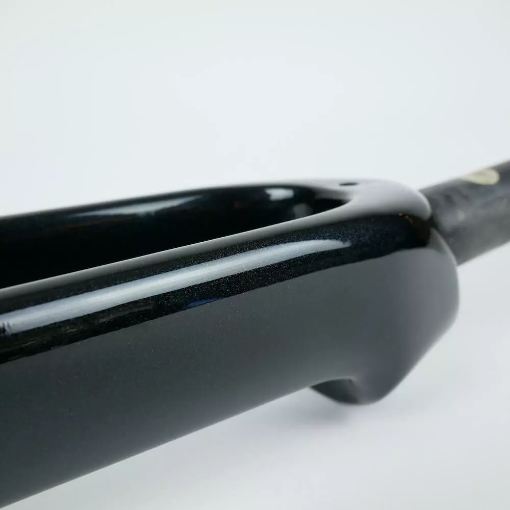 It comes from Team Dimension Data and is in their paintscheme. It is painted metallic black and with a green detail on the inside of the fork leg.