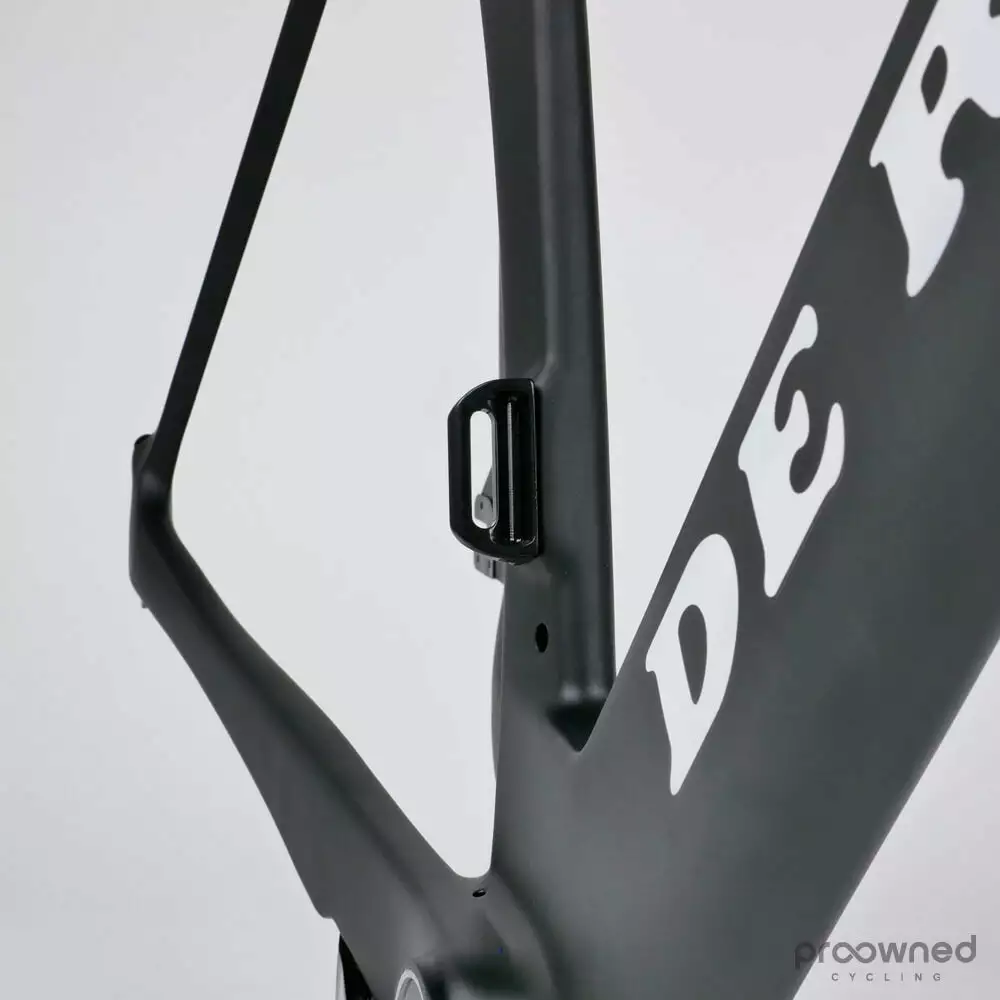 This frame is the result of two years of testing, prototyping, and adjusting in order to make one of the fastest frames on the market. De Rosa has taken no shortcuts in making this aerodynamic frame. Every curve and bend to the frame has been carefully considered to reduce CDA as much as possible. For instance, it is equipped with two aerodynamic, carefully hidden direct mount brakes and a carefully designed seat post.