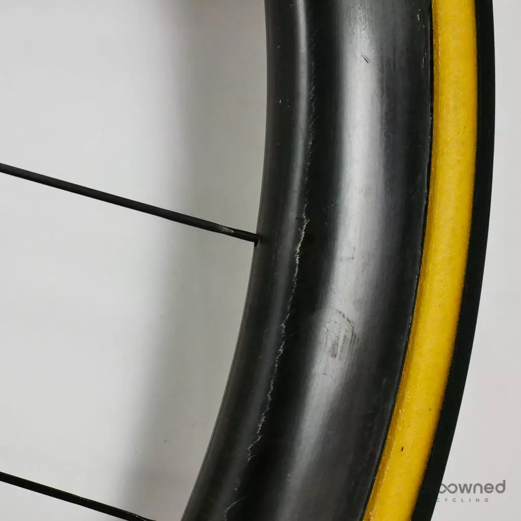 The wheel has some cosmetic marks and scratches but nothing that affects the performance of the wheel. The bearings run perfectly. Overall the wheel is in very good condition. NOTE: The ENVE stickers are removed from the wheel.