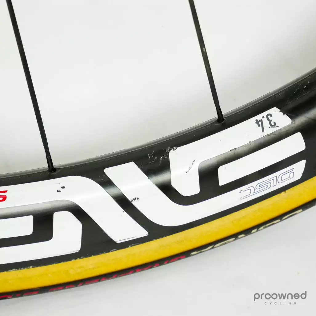The wheels are equipped with a pair of Vittoria Corsa Graphene 2.0 tires. The tires are used but in good condition and are ready for many more miles of racing.