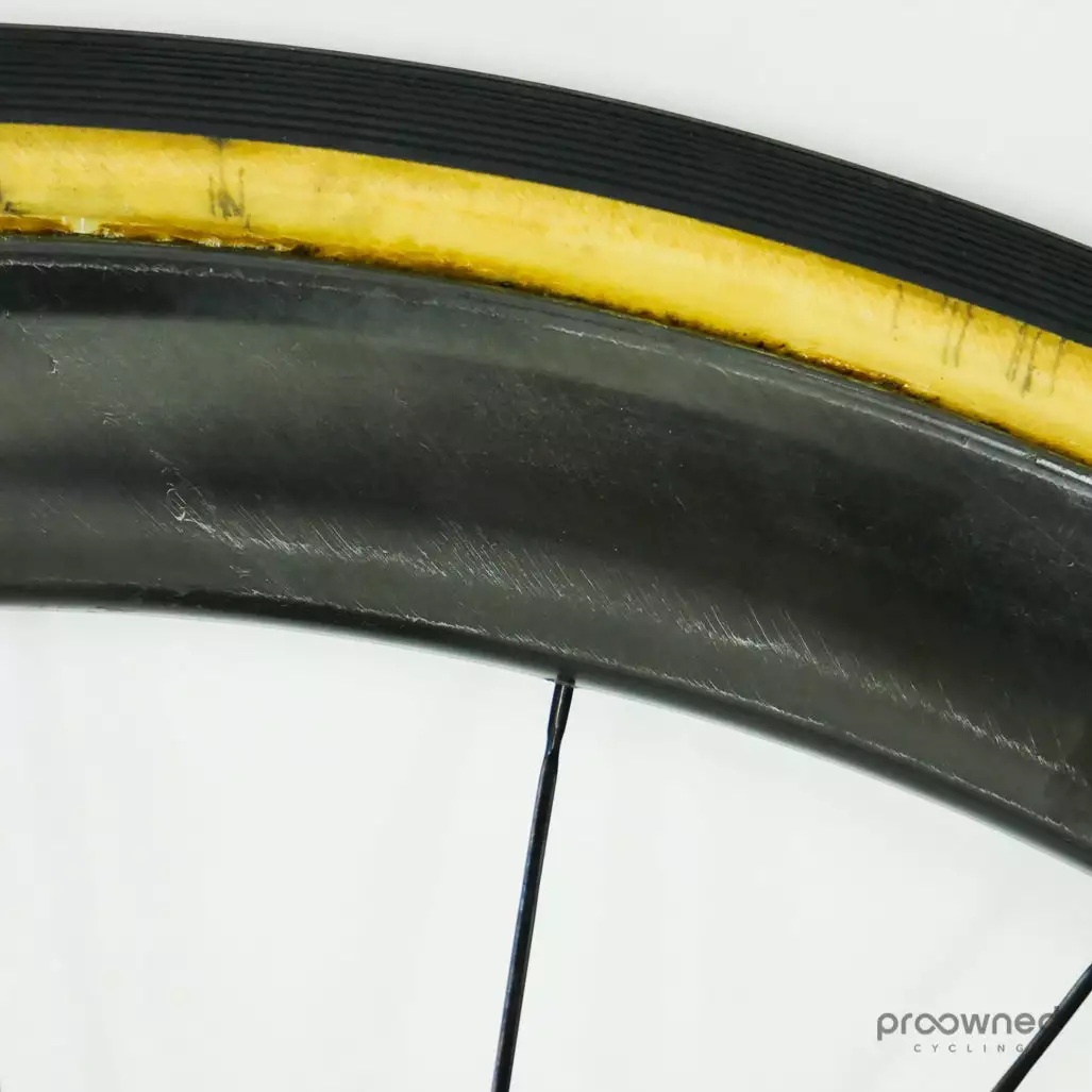 The wheelset has some cosmetic marks and scratches but nothing that affects the performance of the wheelset. The bearings in the rear wheel run perfectly while the bearings in the front wheel are a bit worn but still have many more miles left in them.
