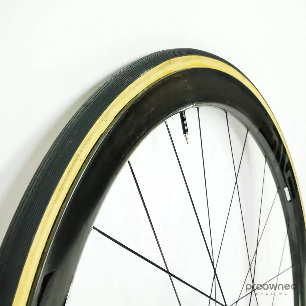 The wheels are equipped with a pair of Vittoria Corsa Graphene 2.0 tires. The tires are used but in good condition and are ready for many more miles of racing.