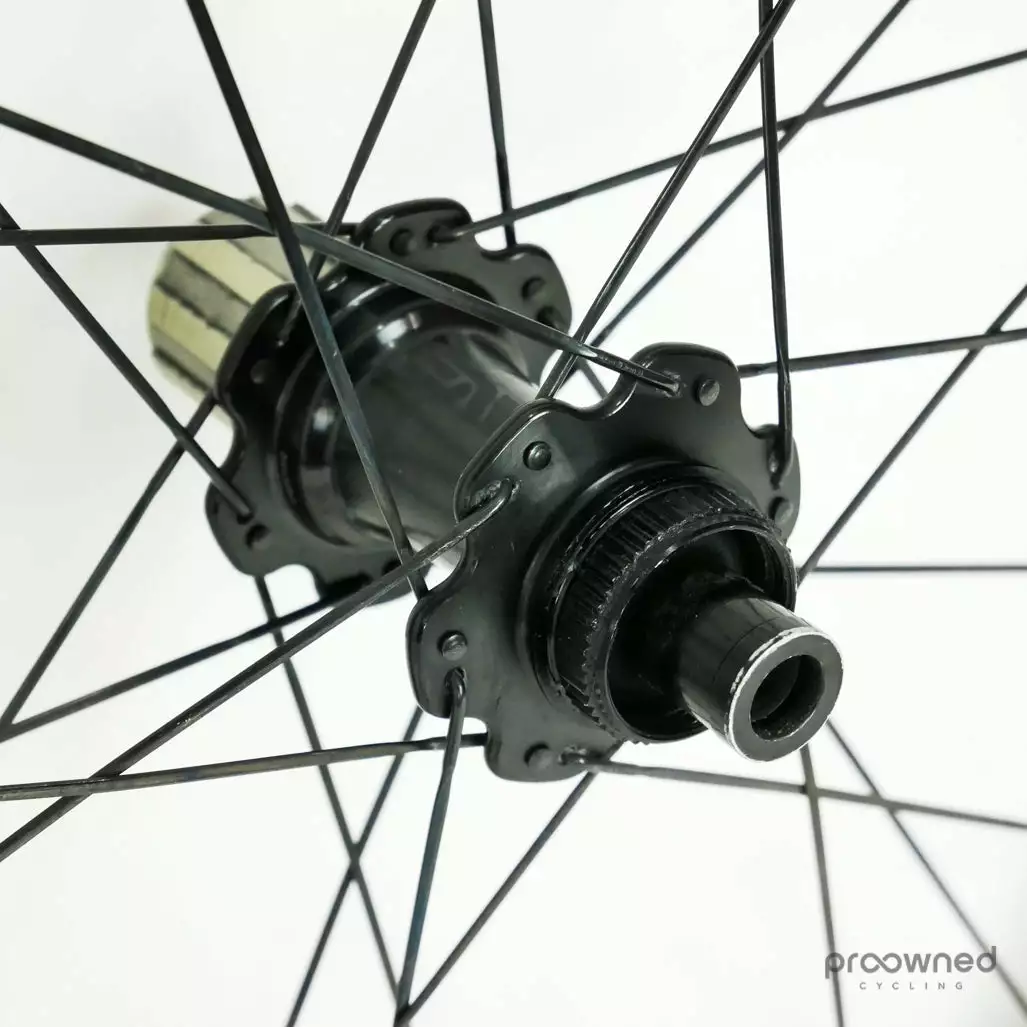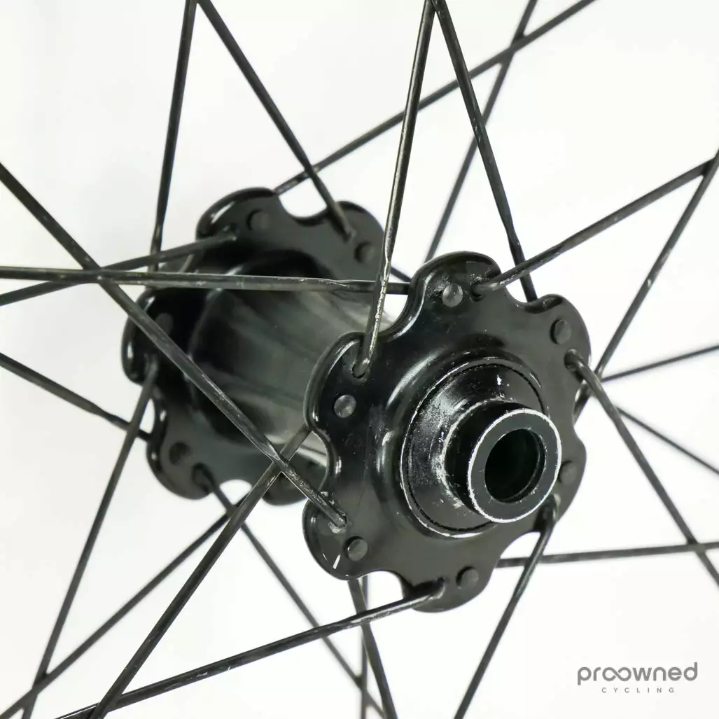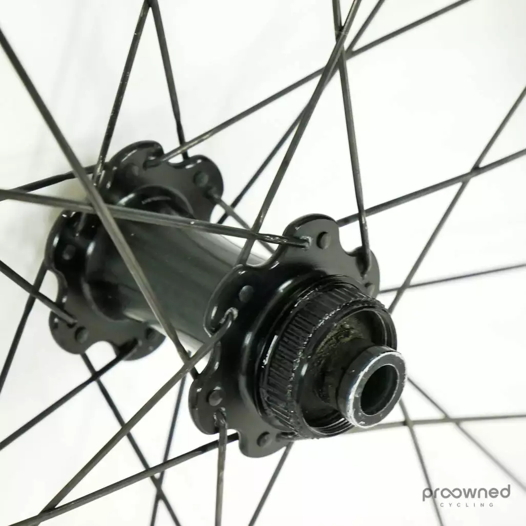 The wheelset has some cosmetic marks and scratches but nothing that affects the performance of the wheelset. The front wheel is without ENVE stickers and the rear wheel has black stickers. Bearings are running smoothly and the wheelset is overall in really good condition.