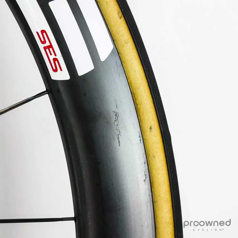 The front rim is brand new. The rear wheel has some marks and scratches. They are purely cosmetic and don’t affect the strength and the performance of the wheel.