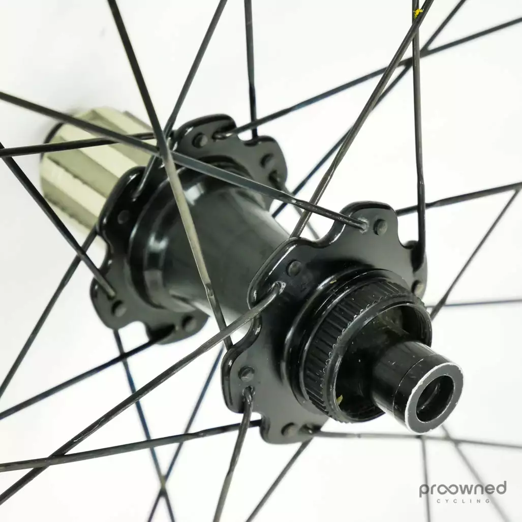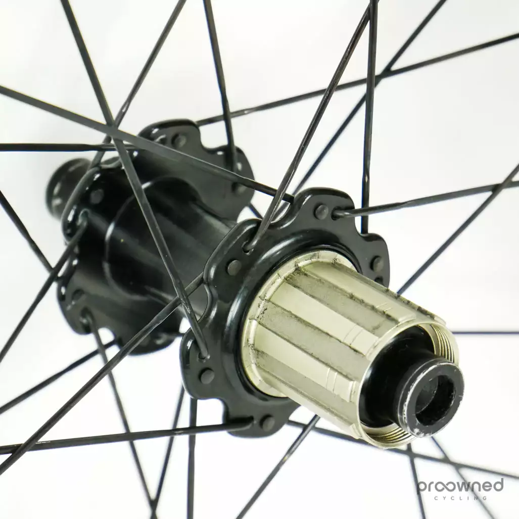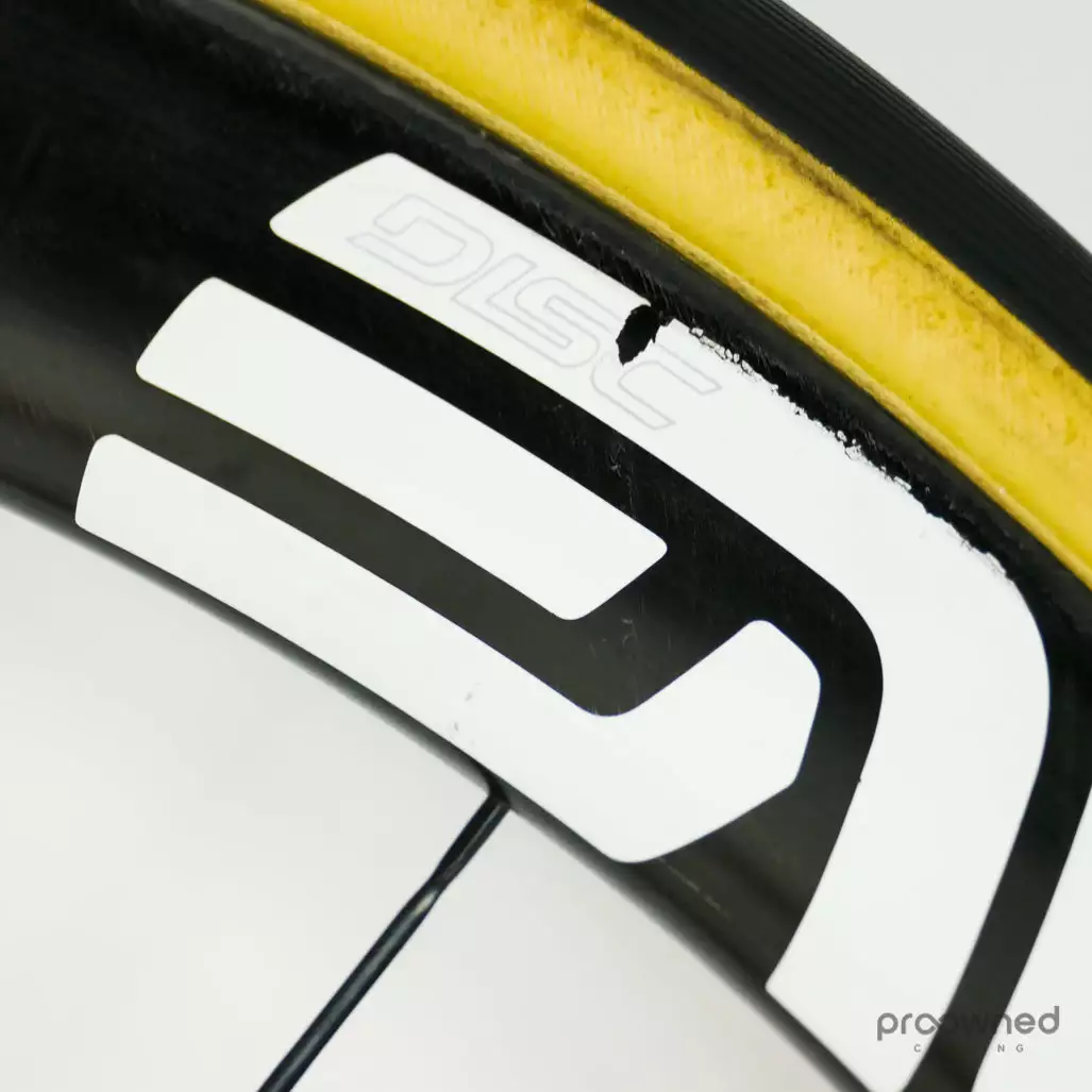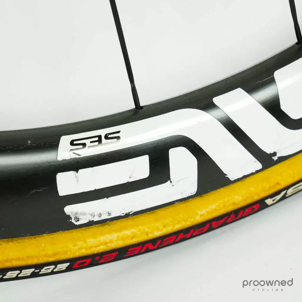 The wheelset has some cosmetic marks and scratches but nothing that affects the performance of the wheelset. Bearings are running smoothly and the wheelset is overall in really good condition.