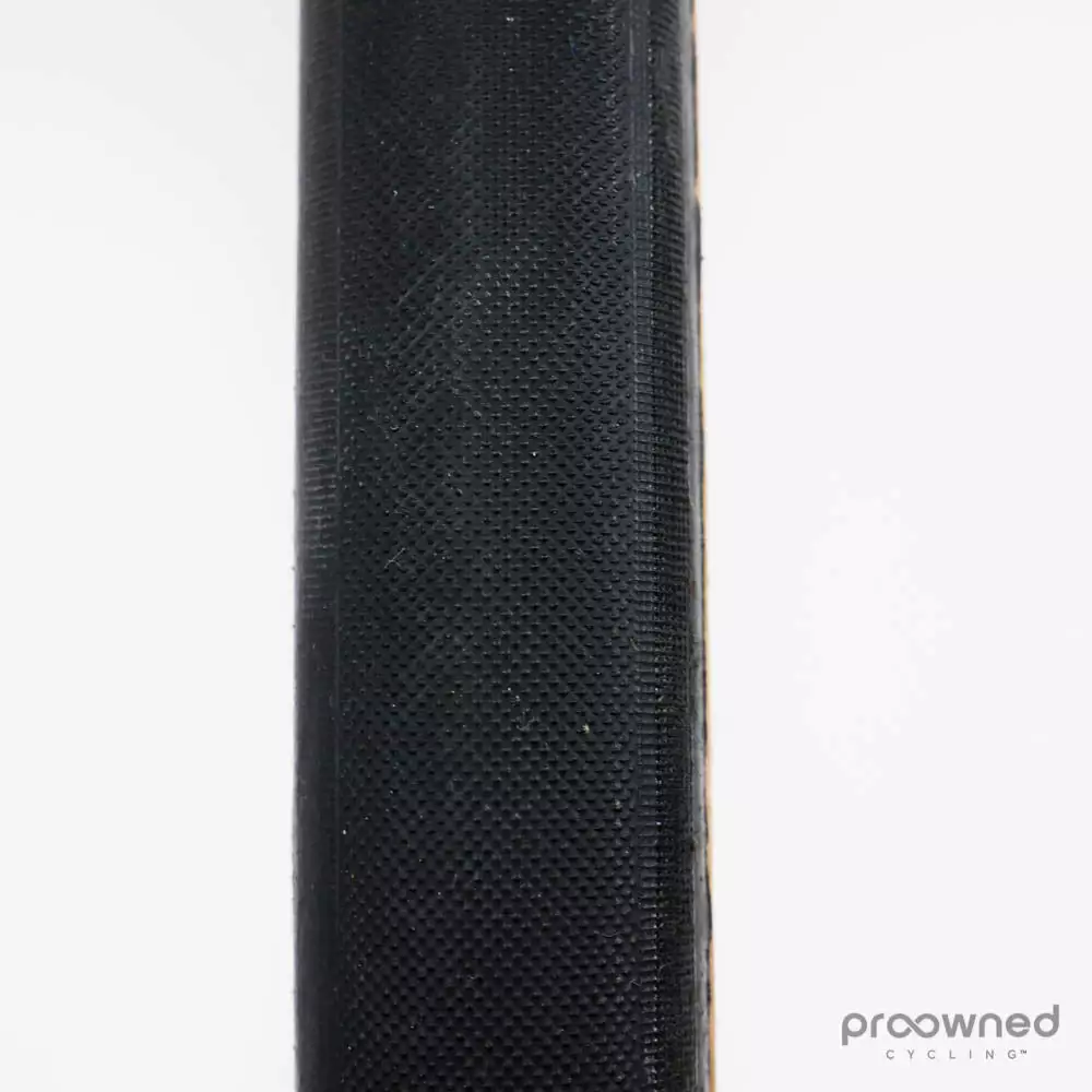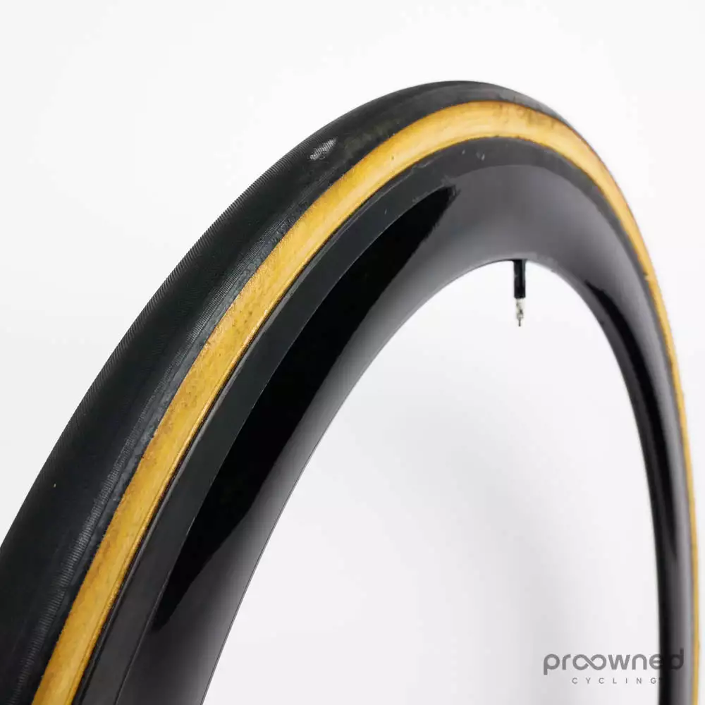 Therefore this prototype is a lightweight tubular tire designed for super-fast TTs or road racing on smooth road surfaces. Constructed with a latex tube for excellent grip and to further decrease rolling resistance and enhancing cornering properties.