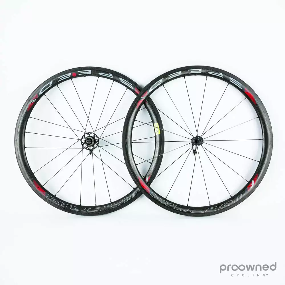 The wheels are equipped with Campagnolo CULT bearings which are the finest ceramic bearings that Campagnolo produces. The bearing has a friction coefficient 40% lower than standard sealed bearings and can spin 5 1/2 times longer.