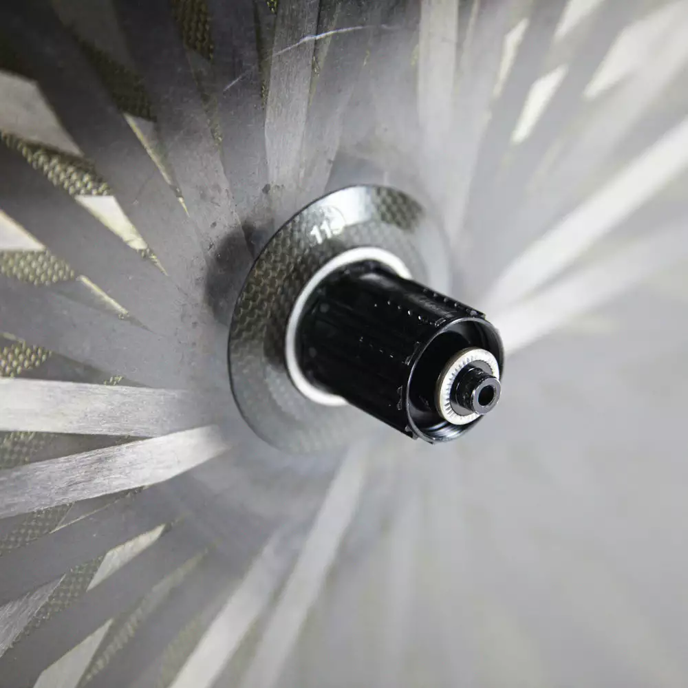 The carbon spoke construction not only looks incredible but offers superior lateral stiffness. But be aware, that the enormous stiffness for more propulsion is at the expense of comfort, meaning a setup with this wheel will leave you with raw performance and speed.