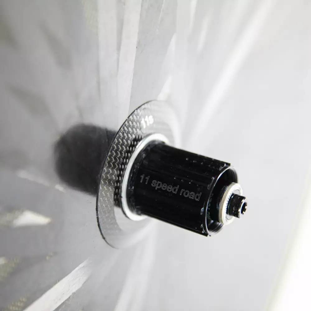 The carbon spoke construction not only looks incredible but offers superior lateral stiffness. But be aware, that the enormous stiffness for more propulsion is at the expense of comfort, meaning a setup with this wheel will leave you with raw performance and speed.