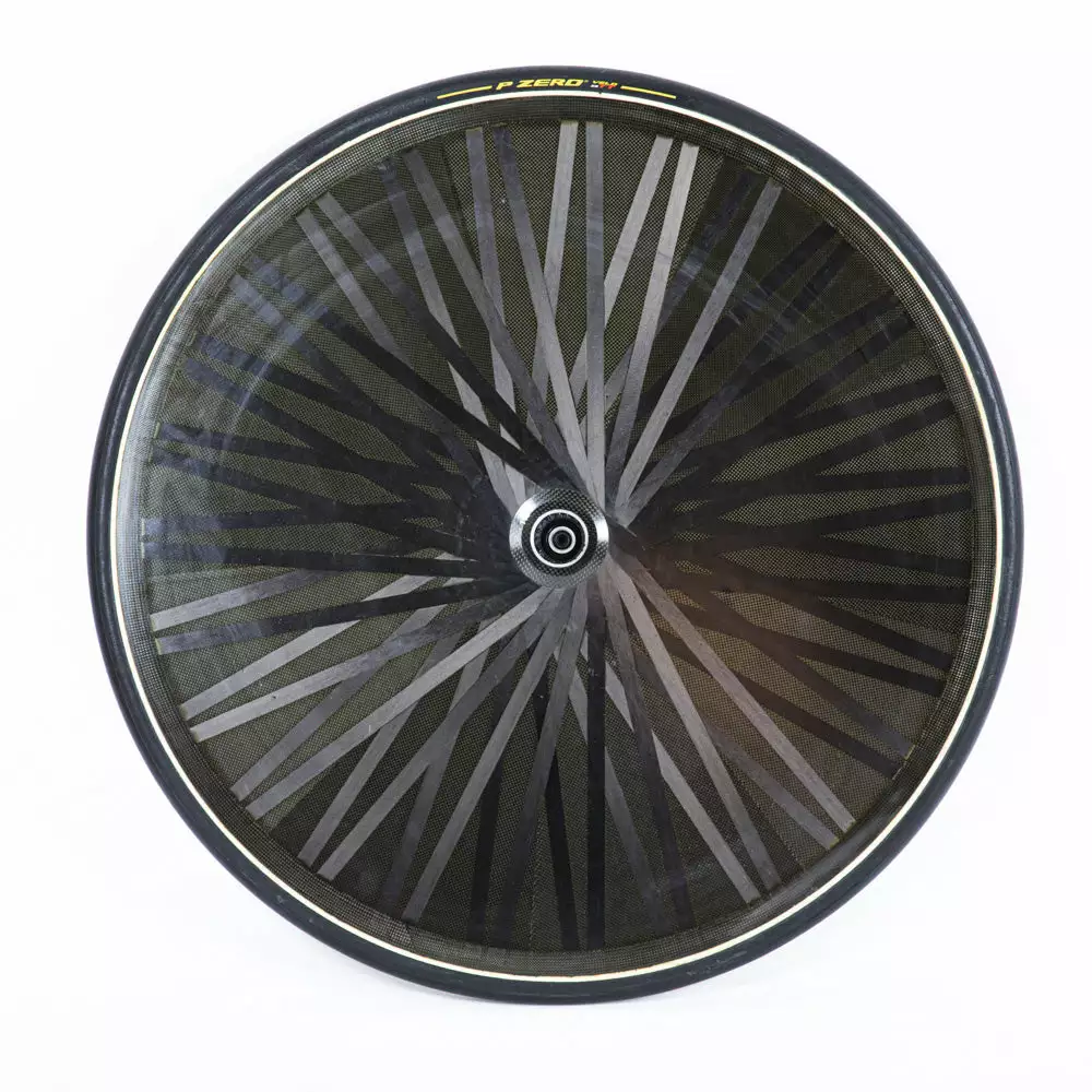 The full carbon disc weighs in at approx 800g and has incredible stiffness offering all the advantages needed to become the fastest on the course or on the track. The wheel is designed with top aerodynamics to avoid air turbulence, excellent climbing characteristics for the hilliest time trial courses, and exceptional acceleration especially out of the curve.