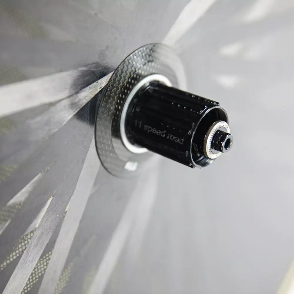 The carbon spoke construction not only looks incredible but offers superior lateral stiffness. But be aware, that the enormous stiffness for more propulsion is at the expense of comfort, meaning a setup with this wheel will leave you with raw performance and speed.