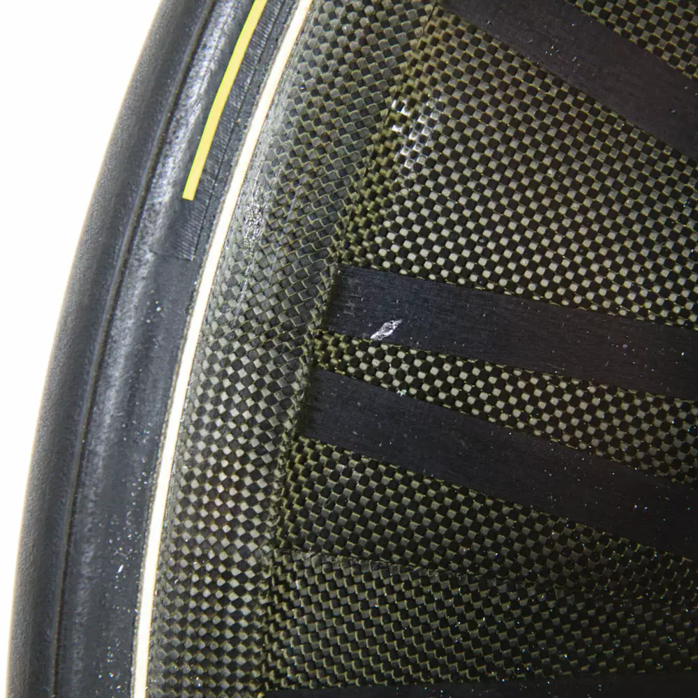 The carbon spoke construction not only looks incredible but offers superior lateral stiffness. But be aware, that the enormous stiffness for more propulsion is at the expense of comfort, meaning a setup with this wheel will leave you with raw performance and speed.