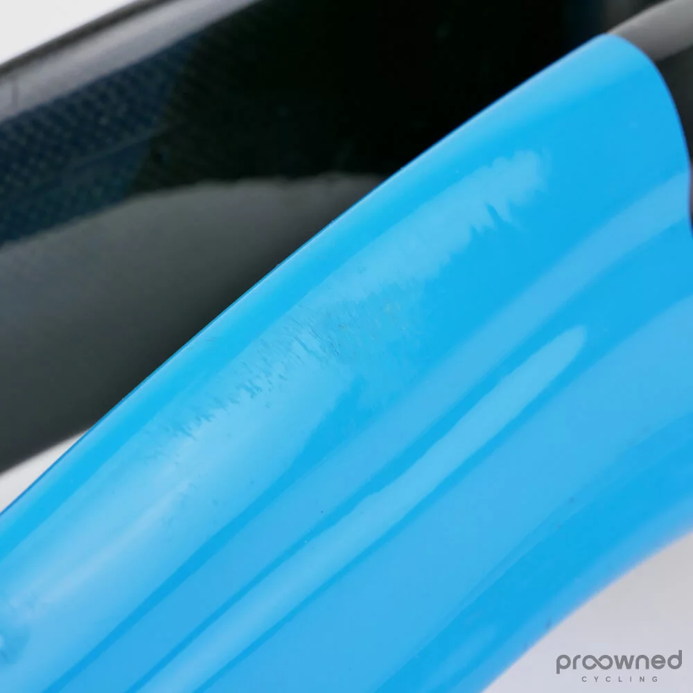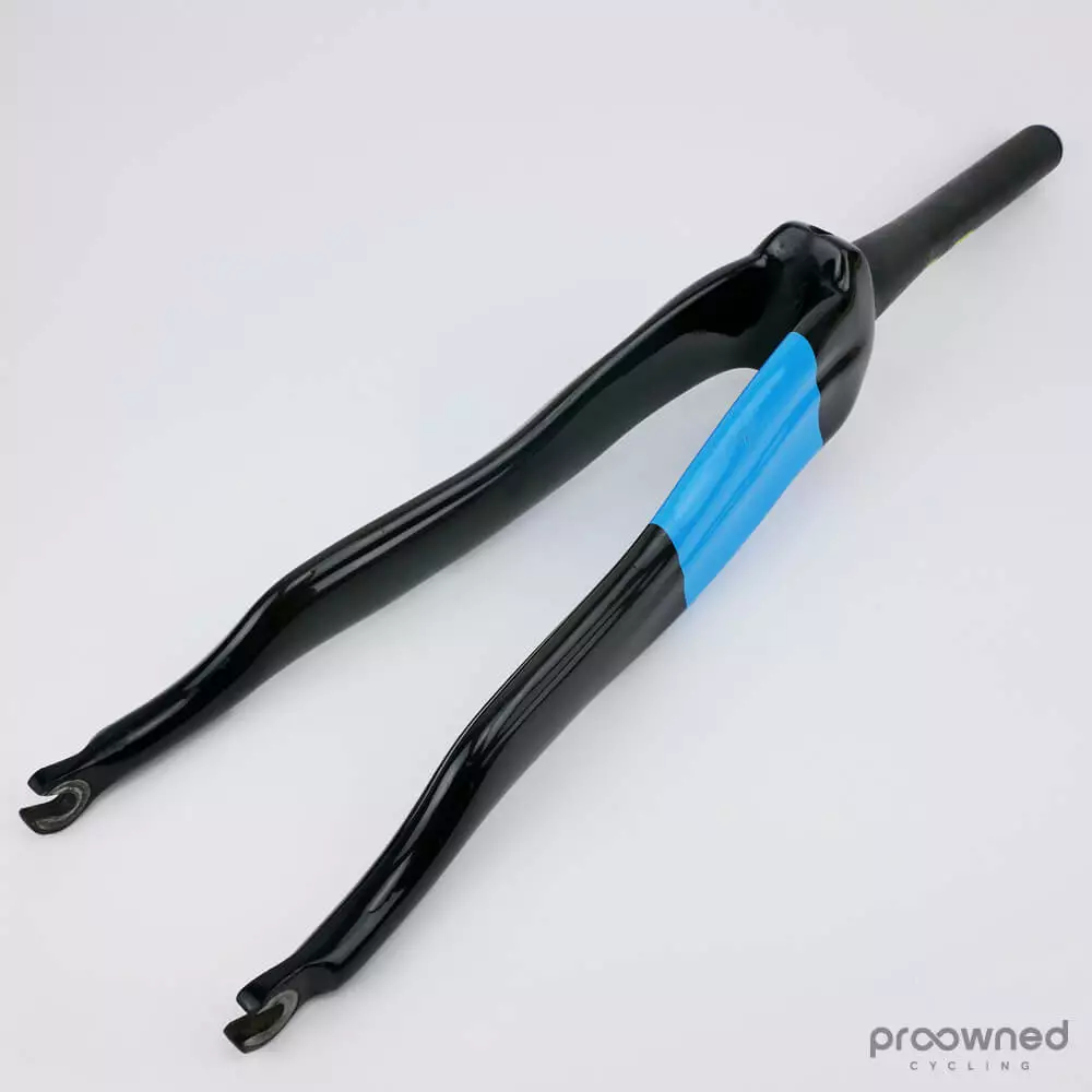 Pinarello Dogma 65.1 fork. The fork fits the Pinarello Dogma 65.1 bike and this has a special Team Sky* color scheme. The fork is cut to a length of 22.5cm. It has some minor scratches on the inside of the fork and the fork legs. Please note that the security tips have been removed for easy and fast wheel insertion.