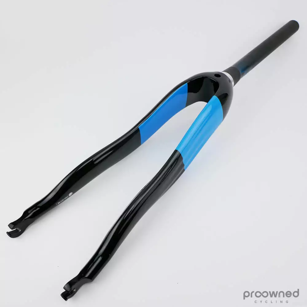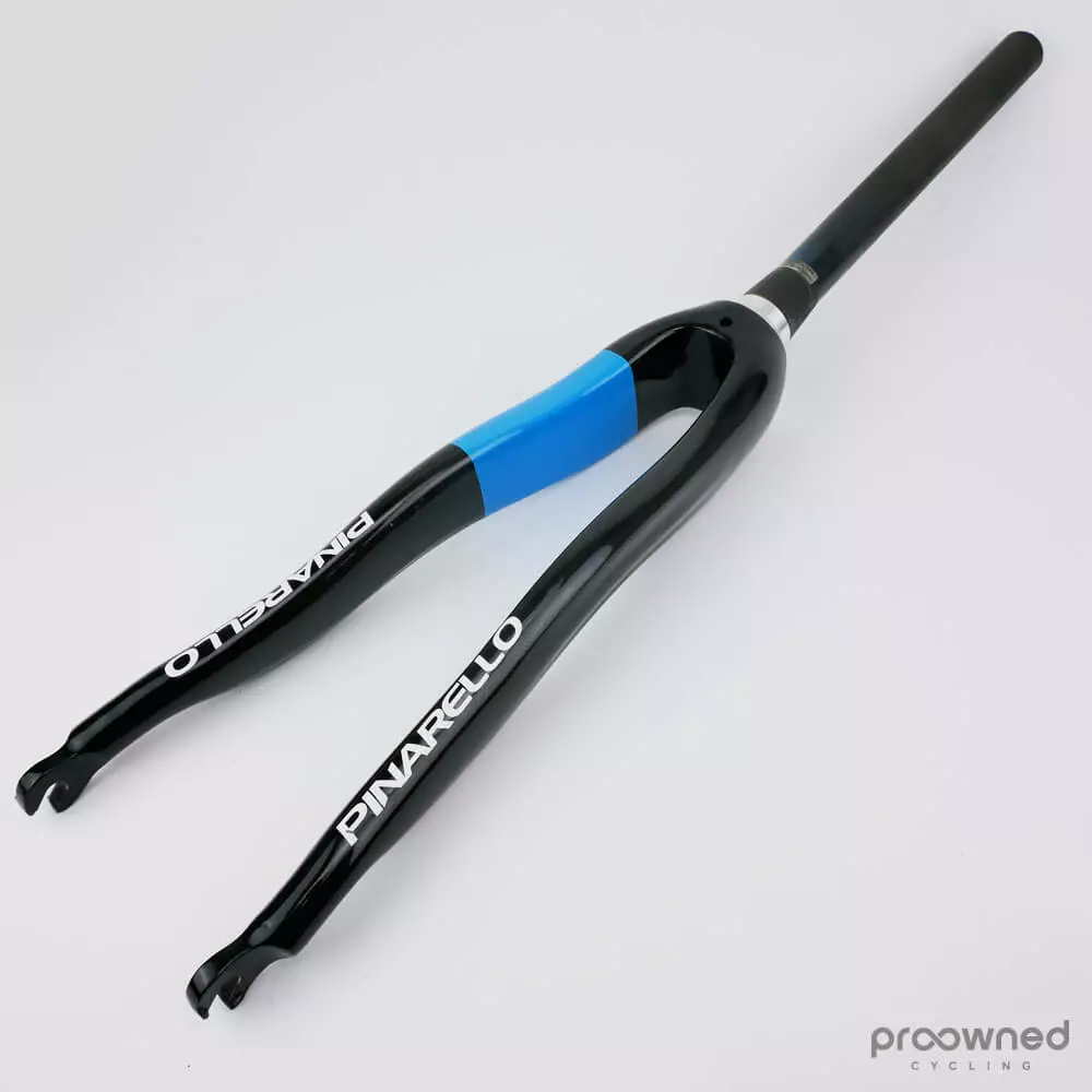 Brand new Pinarello Dogma K fork. The fork fits the Pinarello Dogma K bike and this has a special Team Sky color scheme. The fork is uncut. It has some insignificant scratches on the inside of the fork and the fork legs from storage.