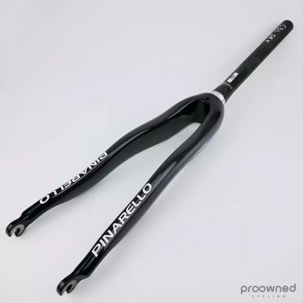 Brand new Pinarello KOBH 60.1 fork. The fork fits the Pinarello KOBH 60.1 bike and this has a special Team Sky* color scheme. The fork is uncut and has a length of 30cm. It has some minor storage scratches on the inside of the fork and the fork legs. It is in good condition.