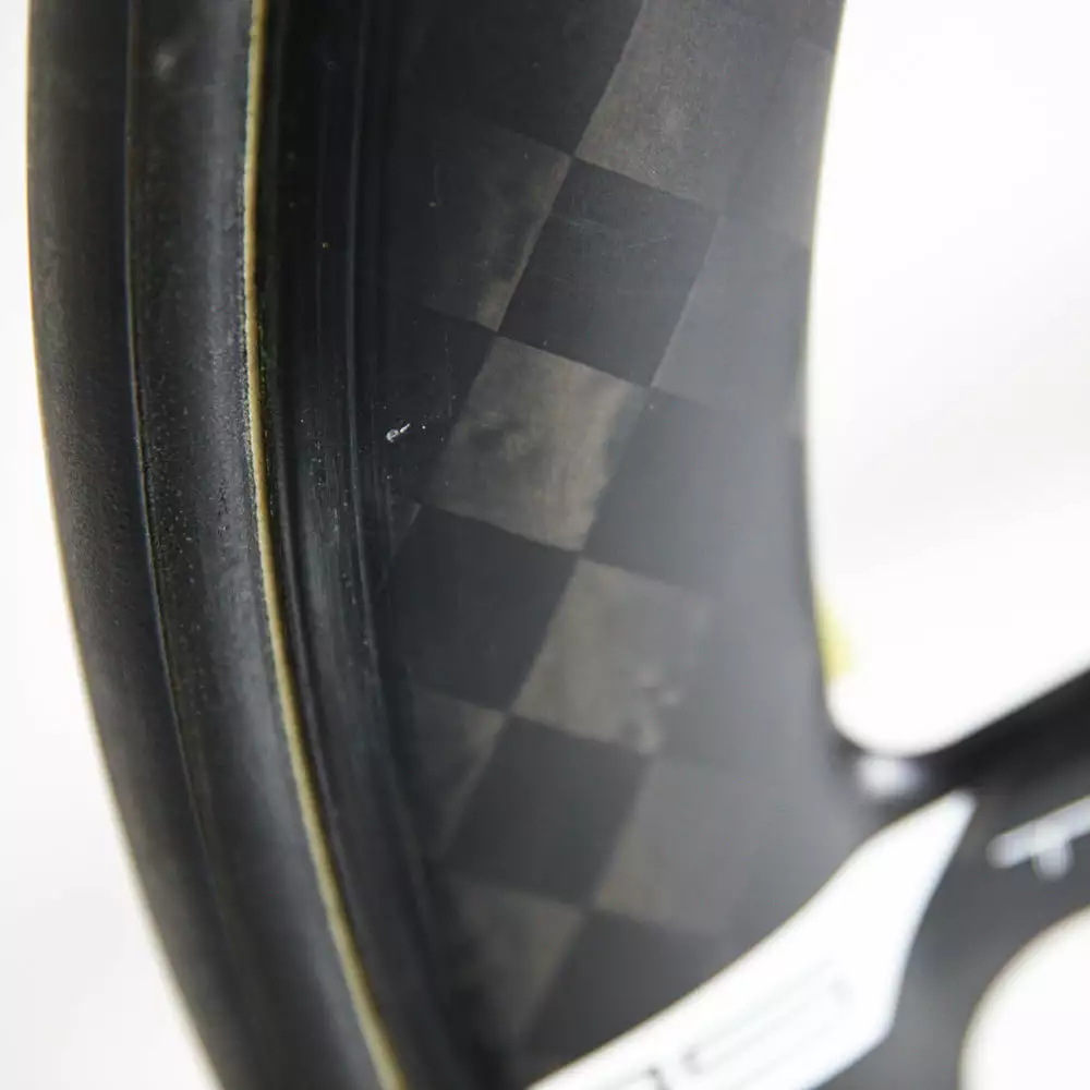 Originally designed in co-creation with former World Tour team Sky and claimed to be the fastest time trial wheel when released. The PRO 3-spoke wheel is reinforced with TeXtreme carbon, leaving a distinctive checkerboard pattern. The special carbon layup offers lightweight, increased stiffness, and high strength – ideal for high speeds in races against the clock.