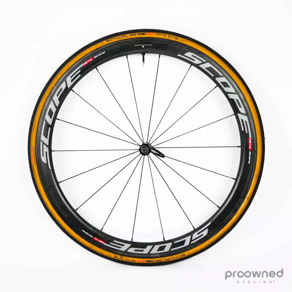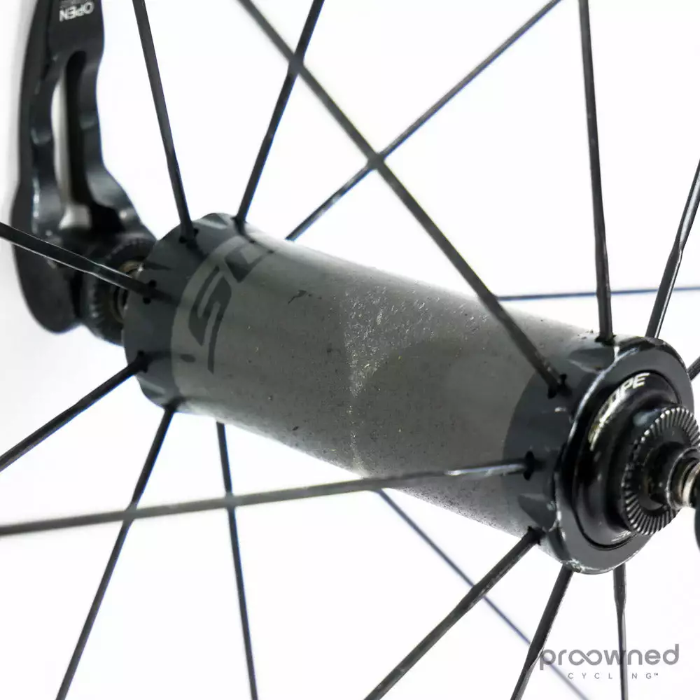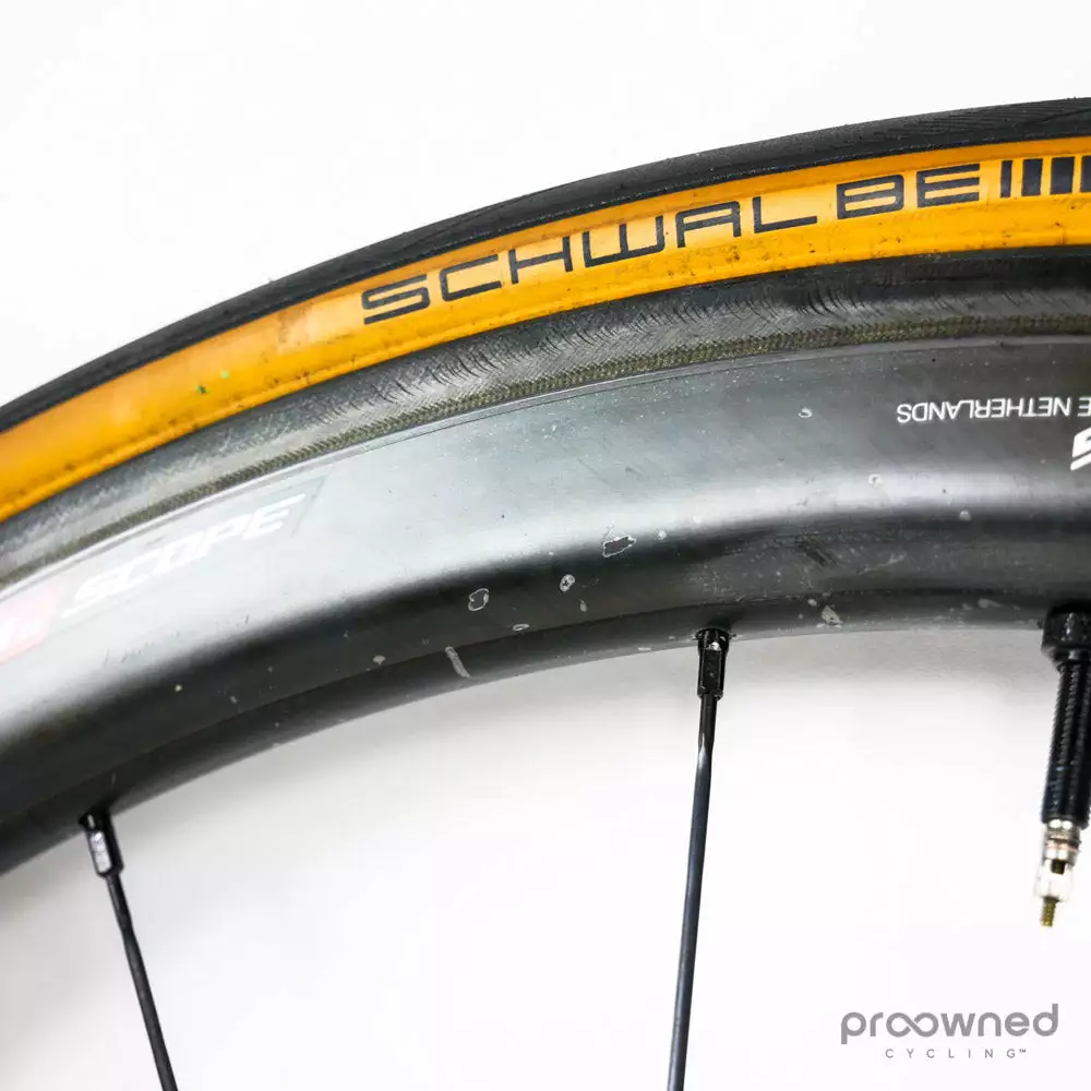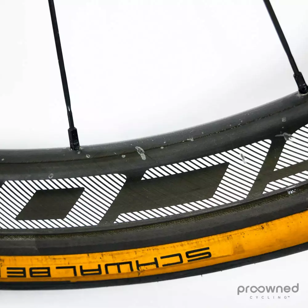 The R4C wheel is built with a 45mm rim depth making it a perfect all-around wheel that is deep enough to get the aerodynamic benefits of a deep rim yet low enough to be steady in windy conditions. With an approximate weight of 1035g (with tires) the wheel is also a good companion going uphill.