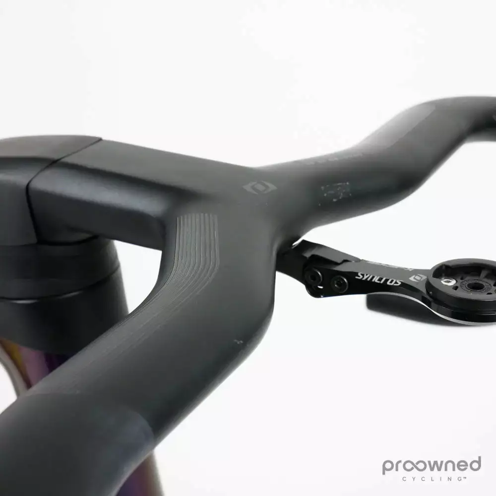 A clear demonstration of Scott’s commitment to integration is the new Syncros Combo Creston iC SL carbon bar and stem. The cables route internally from the hoods, into the bars, through the stem and the head tube. The Combo Creston iC SL bar even allows mechanical shifter cables to run internally too.