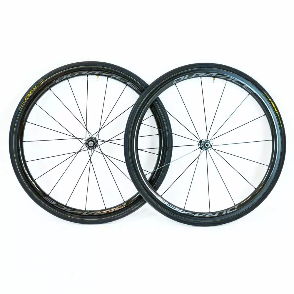 Shimano Dura-Ace C40 WH-R9100 tubular carbon wheelset for rim brakes.